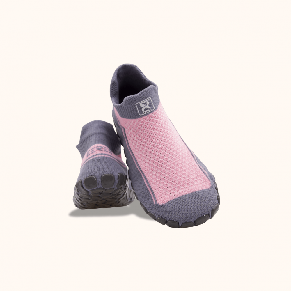 Dětské ponožkoboty šedorůžové - hladké