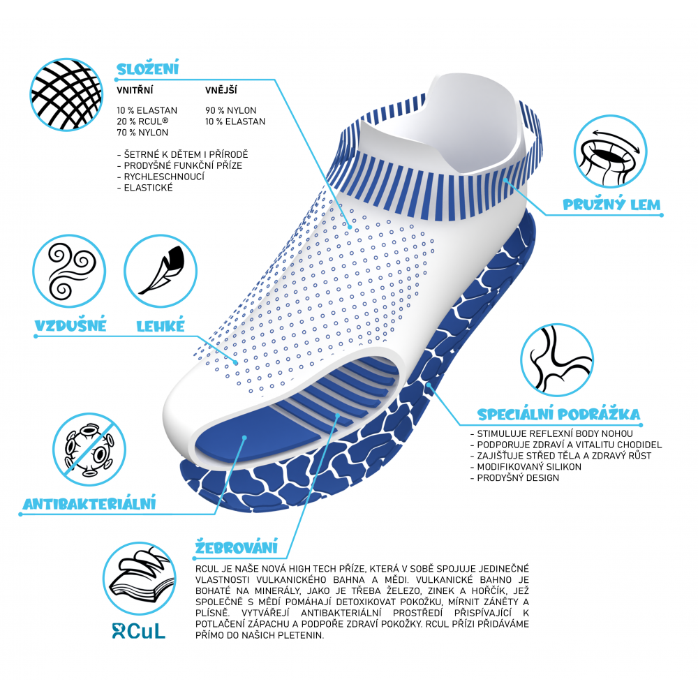 Elastický lem perfektně drží ponožkobotu na noze, takže se nemusíte bát sklouznutí.