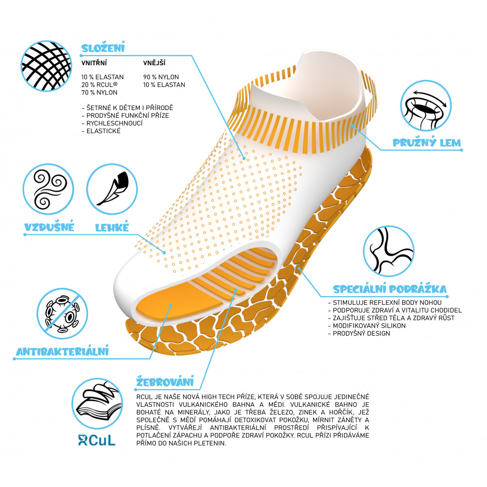 Elastický lem perfektně drží ponožkobotu na noze, takže se nemusíte bát sklouznutí.