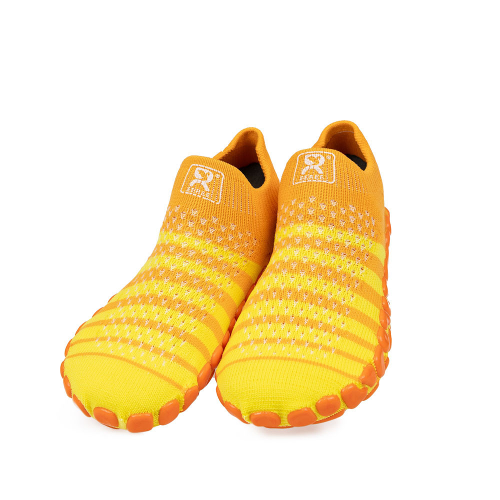 Dětské ponožkoboty žluté - s pruhy